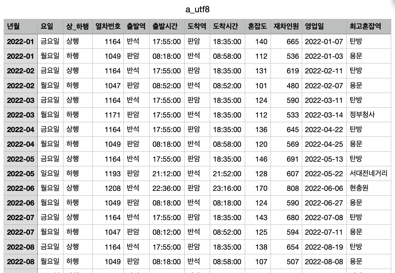 - 사진에서는 numbers에서 파일을 열어 이렇게 보이지만, 실제로 파일은 아래와 같은 방식으로 저장되어있다.